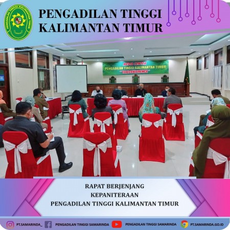 Selasa , 8 Februari 2022 dilakukan Rapat Berjenjang Bagian Kepaniteraan di Ruang Sidang I Pengadilan Tinggi Kalimantan Timur. Rapat dipimpin oleh Panitera Pengadilan Tinggi Kalimantan Timur (Bp. Drs. Junaedi, S.H., M.H.) didampingi Para Hakim Tinggi Pengawas Bidang dan diikuti oleh Para Panmud, dan Staff bagian Kepaniteraan. Isi rapat berjenjang adalah: