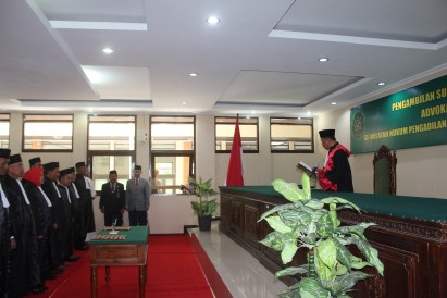 Pengambilan Sumpah / Janji Advokat Se-Wilayah Hukum Pengadilan Tinggi Kalimantan Timur tanggal 08 Agustus 2018 oleh Ketua Pengadilan Tinggi Kalimantan Bapak Dr. H. Soedarmadji, SH. M.Hum